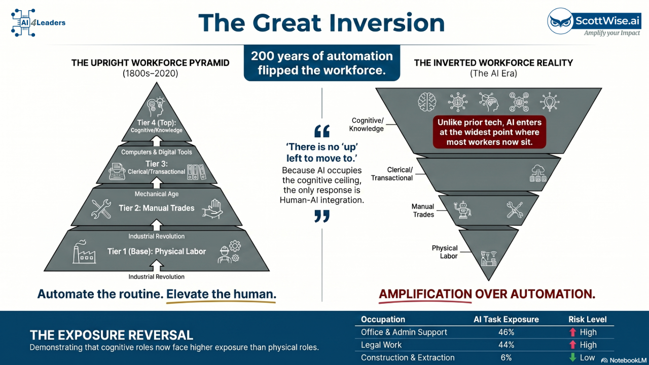 This is not a commentary on whether those jobs will disappear. That debate is ongoing and unsettled. This is a commentary on something more immediate: the response required of every leader is categorically different than anything prior technology demanded.